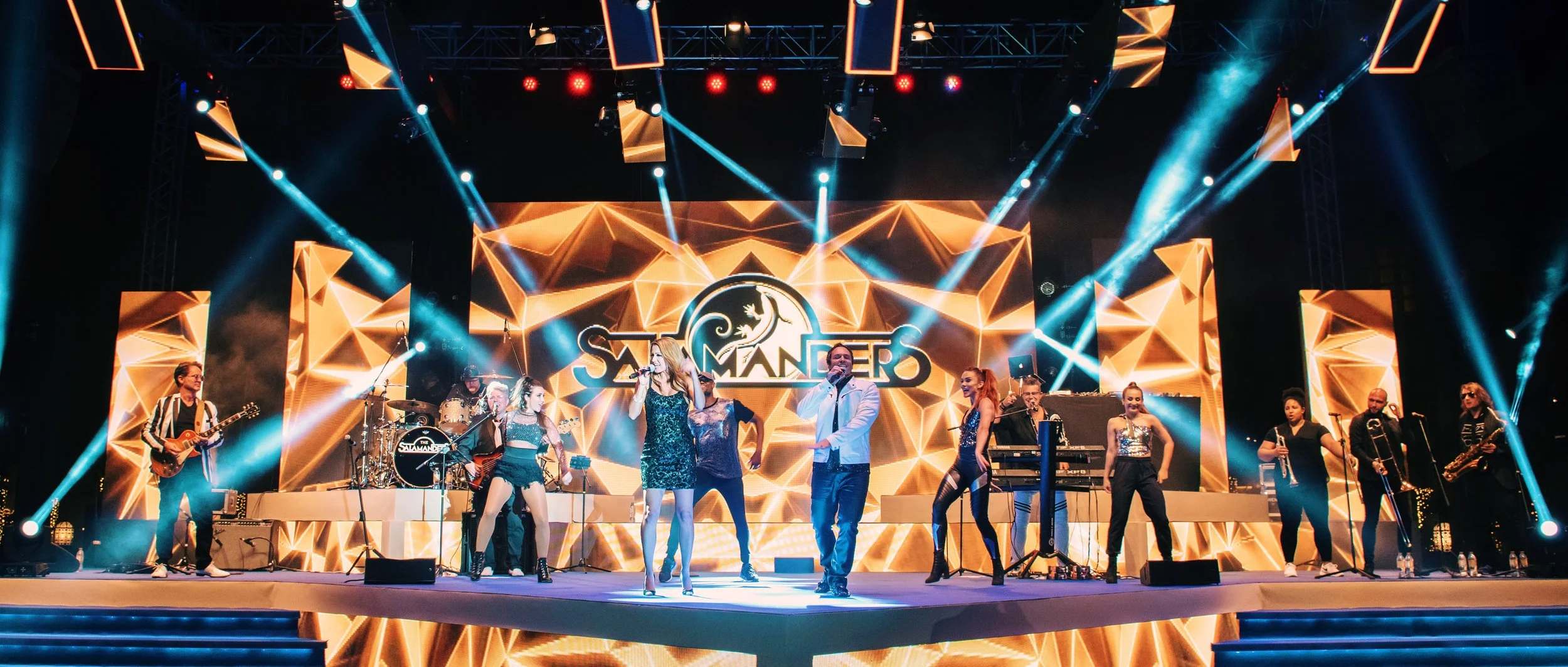 When you book the Salamanders for your event, you’re in for a high-energy event with unparalleled sound and something for everyone. Our band is customizable for your needs with an optional horn section, additional front singers, customized set lists, and more. Lights and sound can be included in your package, or we can work directly with your venue.